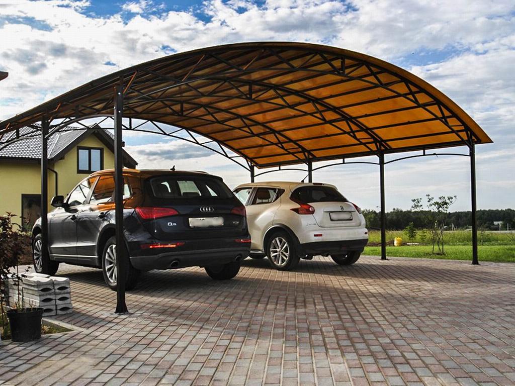 Поэтому компания "НавесСтрой" настоятельно рекомендует не экономить, а усилить каркас навеса для двух автомобилей более жёсткими профилями с увеличенной толщиной металла и количеством несущих ферм.